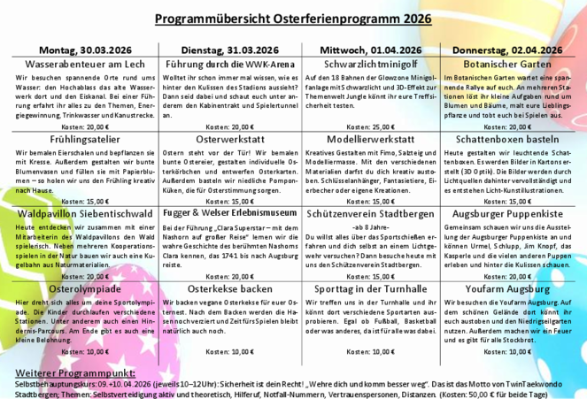 Übersicht Osterferienprogramm 2026
