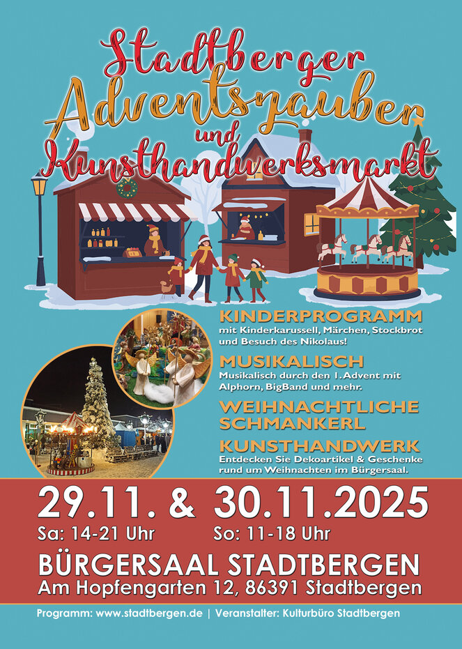 Der Stadtberger Adventszauber findet traditionell am 1. Adventswochenende statt und hat am Samstag von 14.00 bis 21.00 Uhr und am Sonntag von 11.00 bis 18.00 Uhr geöffnet. Im Außenbereich vor dem Bürgersaal (Osterfeldstraße) werden von den Vereinen viele weihnachtliche Schmankerl, wie Glühwein, Kinderpunsch, Würstchen und Gegrilltes angeboten. Crêpes, Waffeln, heiße Cocktails und vieles andere mehr runden das kulinarische Angebot ab.